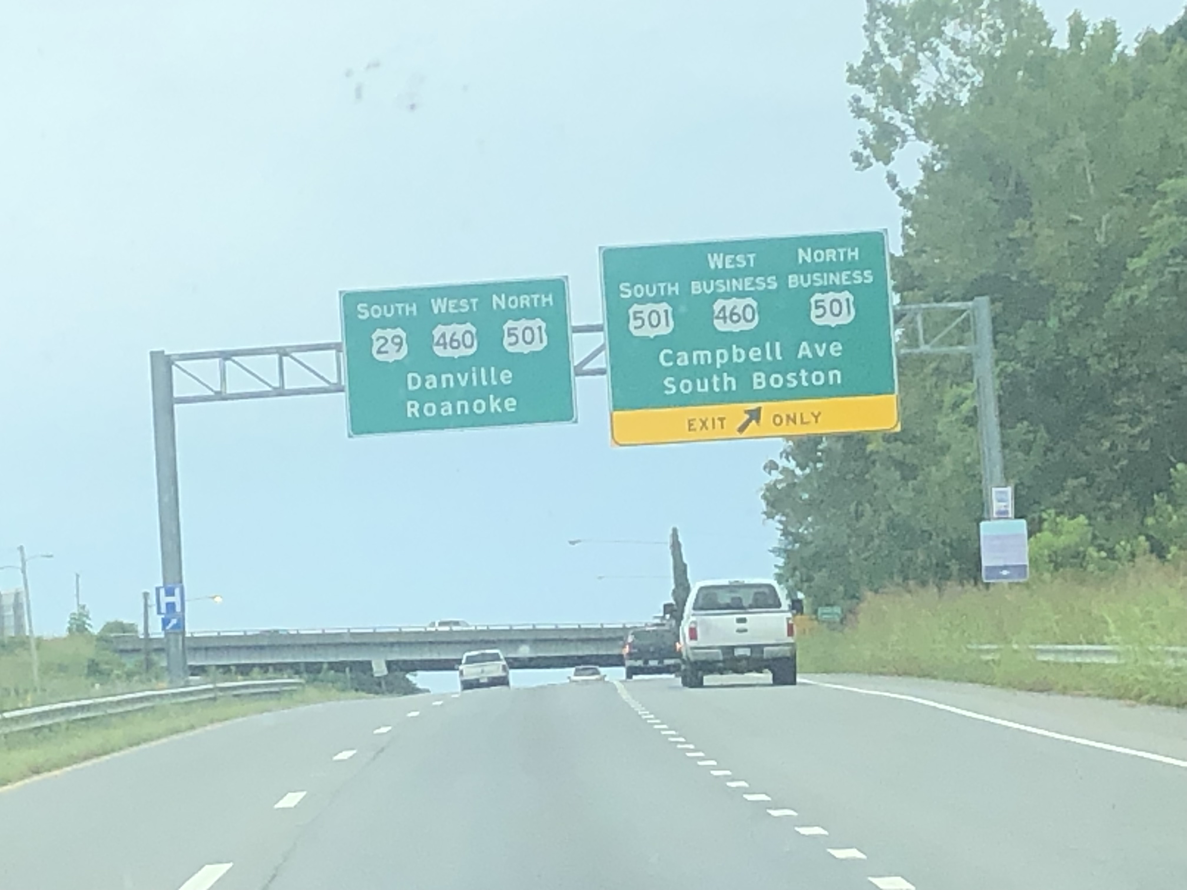 US 29 and US 460 are concurrent on the east side of Lynchburg. |
